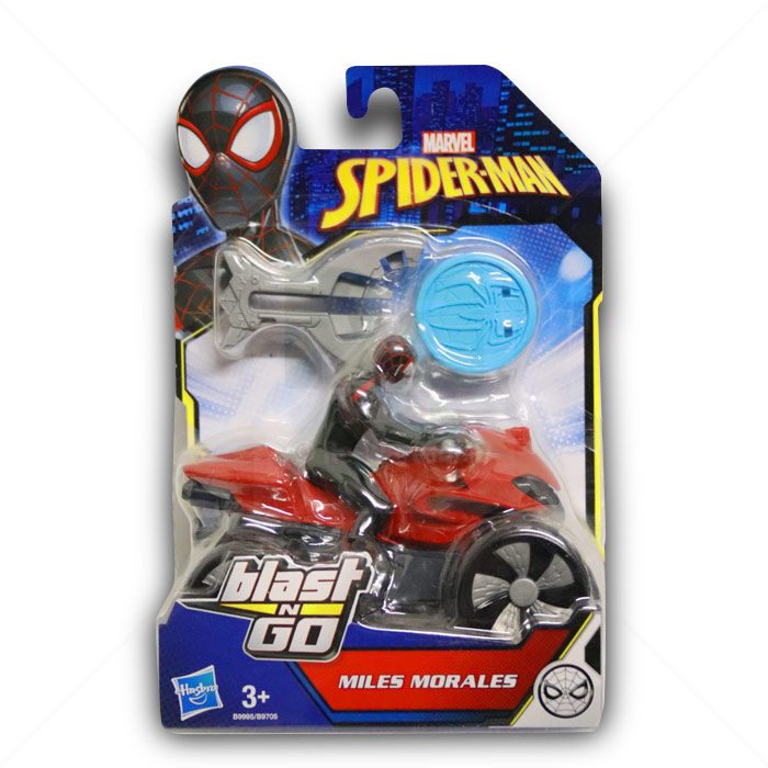 *NEU* Die Actionfigur Miles Morales aus dem Spider-Man Universum von Hasbro. Ausgestattet mit einem Launcher, einem Fahrzeug und einem Projektil. Der Launcher kann vorne befestigt werden oder dient als Start für das Fahrzeug.