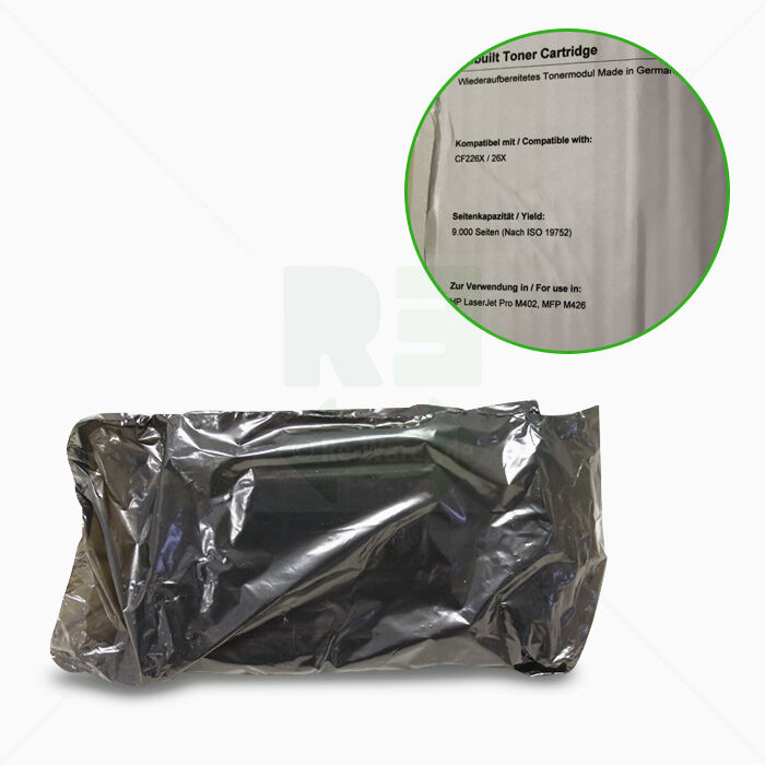 *Neu* Das Wiederaufbereitete Tonermodul wurde mit der Farbe Schwarz befüllt, es ist Kompatible mit dem CF226X. Nach ISO 19752 hat es eine Seitenkapazität von 9000 und wird für den HP LaserJet PRO M402, MFP M426 verwendet.